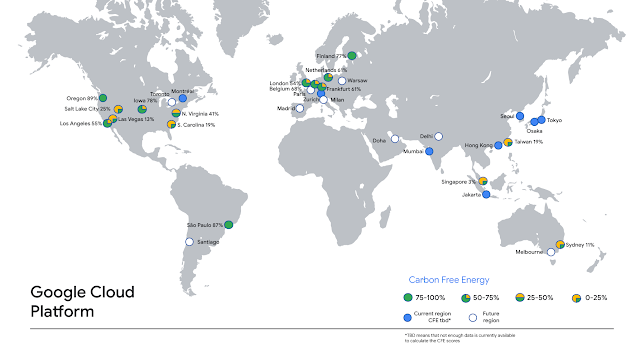 Decarbonizzare completamente la fornitura di elettricità dei data center è il prossimo passo cruciale per realizzare un futuro carbon-free e sostenere i clienti di Google Cloud con il cloud più pulito del settore. Per raggiungere questo obiettivo, ogni region di Google Cloud sarà alimentata sempre di più da un mix di energia priva di emissioni di carbonio e sempre meno da energia di origine fossile. Google misura i suoi progressi lungo questo percorso con Carbon Free Energy Percentage (CFE%).