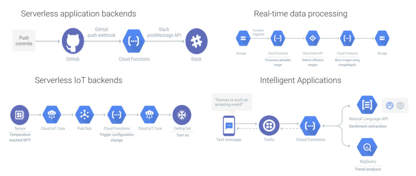Cloud Functions è la piattaforma Function-as-a-Service di Google Cloud che consente agli utenti di creare funzioni single-purpose e stand-alone che rispondono ad eventi, senza dover gestire un server o un ambiente di runtime. Le funzioni cloud sono perfette per applicazioni serverless, backend mobili o IoT, sistemi di elaborazione dati in tempo reale, analisi di video, immagini e sentiment e persino per cose quali chatbot o assistenti virtuali.