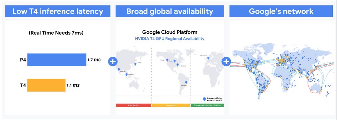 Grazie alla disponibilità globale e alla rete ad alta velocità di Google, Nvidia T4 su GCP può servire servizi globali che richiedono un’esecuzione rapida a un prezzo più conveniente.