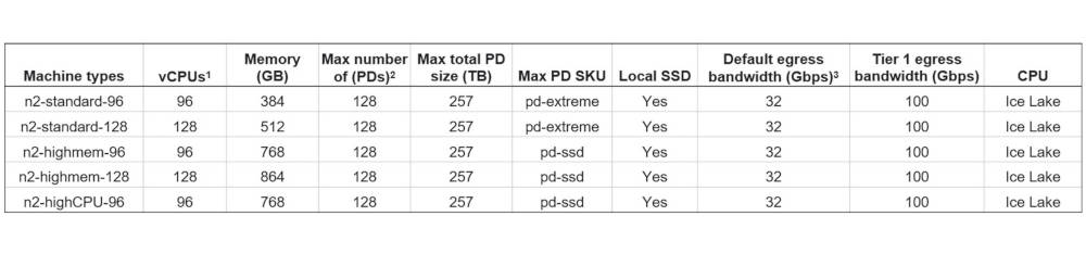 Google Cloud sta anche espandendo la sua offerta di tipi di macchine della famiglia N2 VM, che ora includerà le macchine predefinite general-purpose basate su Intel di maggiori dimensioni mai proposte da Google.