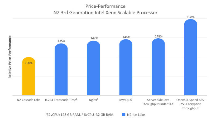 Queste nuove VM N2 sono offerte allo stesso prezzo delle VM N2 esistenti basate su processori Intel Xeon Scalable di seconda generazione, ha poi sottolineato Google Cloud.