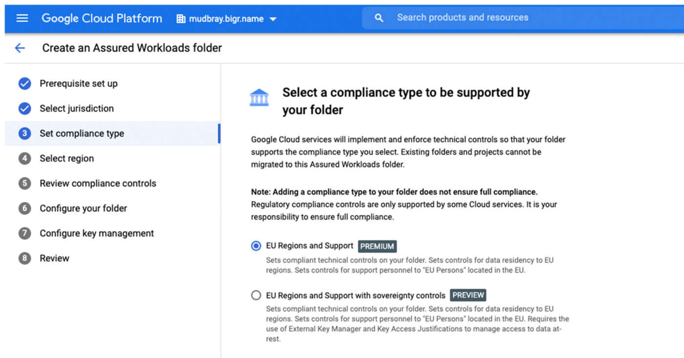 L’opzione dell’Unione europea fornisce l’accesso a due diversi tipi di controlli Assured Workloads.