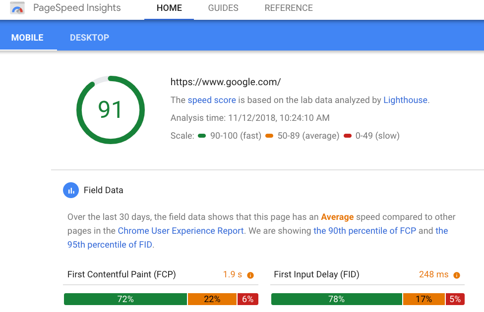 PageSpeed Insights è uno strumento online che mostra i dati di performance del sito, insieme a suggerimenti sulle più comuni ottimizzazioni per migliorarlo.