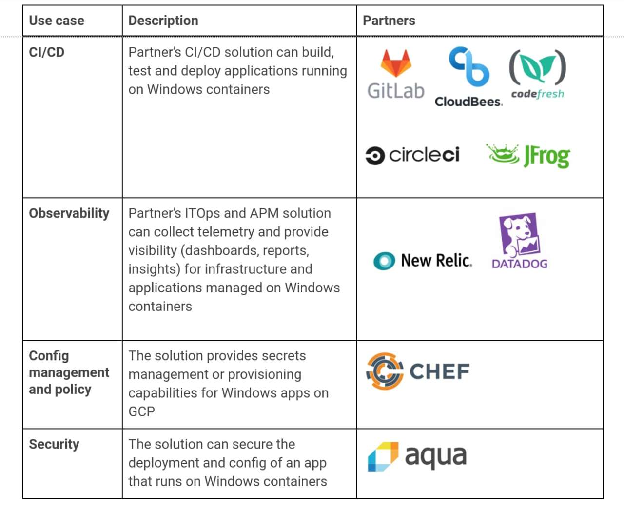 Alcune soluzioni dei partner ISV dell’ecosistema tecnologico di Google Cloud testate per funzionare con i container Windows in Google Kubernetes Engine sono, ad esempio, la piattaforma di sicurezza Aqua, la soluzione di application delivery Habitat di Chef, l’esecuzione di pipeline CI/CD su GitLab e altre ancora.