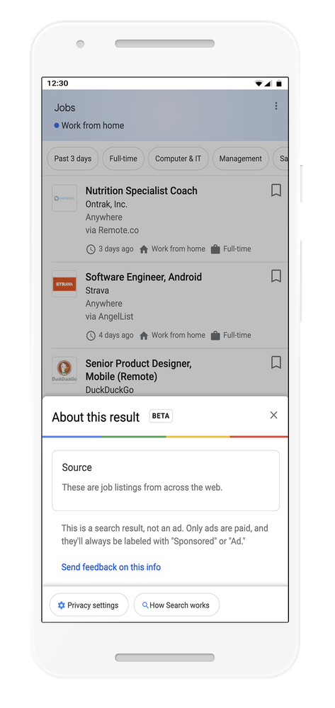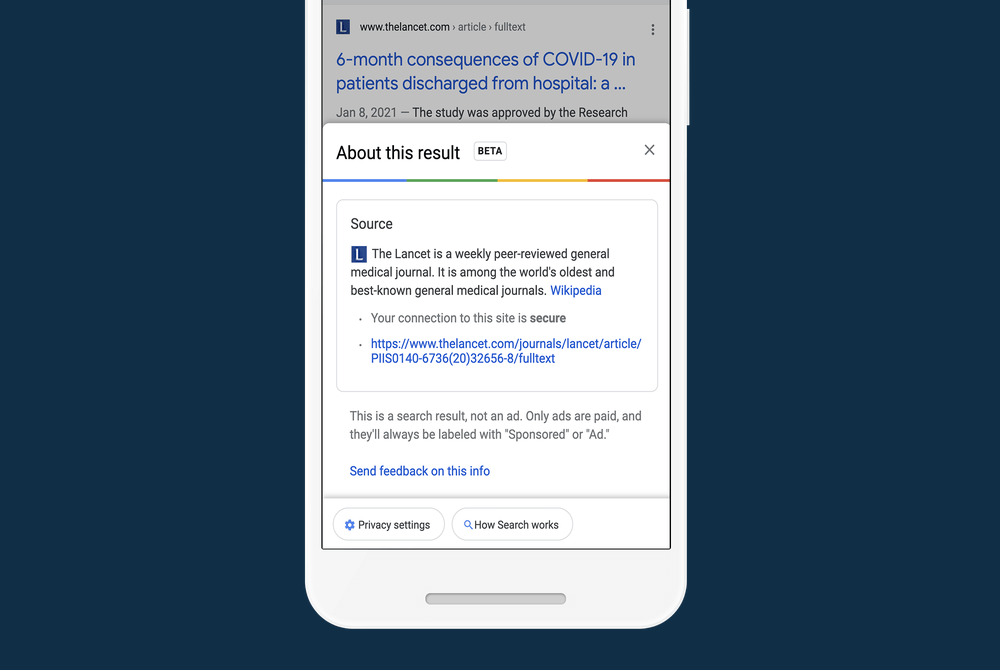 Per offrire all’utente qualche dettaglio in più sulle fonti dei contenuti senza dover fare ulteriori ricerche sui siti, accanto alla maggior parte dei risultati il motore di ricerca di Google inizierà a posizionare un’icona che simboleggia un menu: toccandola, l’utente potrà saperne di più sul risultato o sulla funzione e da dove provengono le informazioni o i contenuti.