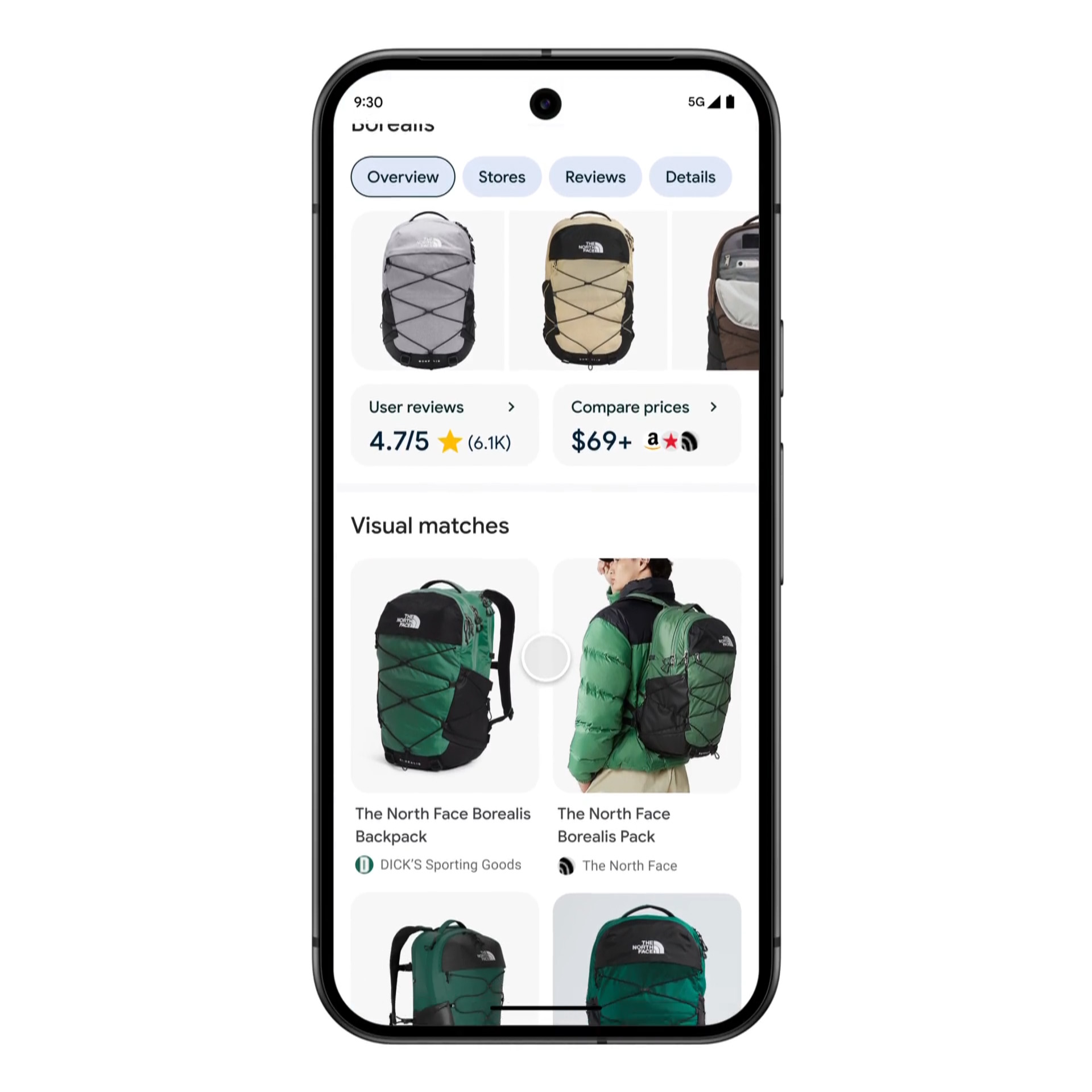 Google sta anche rendendo più facile fare acquisti nel mondo che ci circonda con Lens. Per anni è stato possibile utilizzare Lens per trovare prodotti visivamente simili tra i rivenditori di tutto il web. Ma a partire da questa settimana, gli utenti potranno vedere una pagina di risultati molto più utile che mostra le informazioni chiave sul prodotto cercato, comprese le recensioni, le informazioni sui prezzi dei vari rivenditori e i luoghi di acquisto.