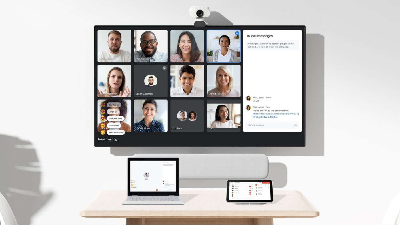 Parlando di riunioni, poiché la maggior parte di esse continua ad essere solo online, Google sta aggiungendo alcune nuove funzionalità che ora consentono ai possessori di Google Nest Hub Max di ospitare riunioni a casa e di configurare un laptop come proprio secondo schermo.