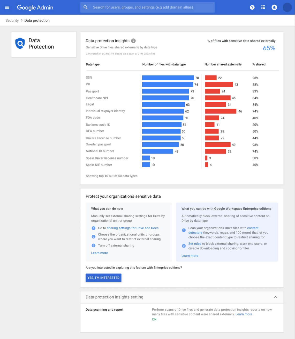 Anche in questo ambito Google Cloud sta aumentando la visibilità degli amministratori in materia di sicurezza dei dati, per aiutarli a prendere le migliori decisioni in materia di protezione.