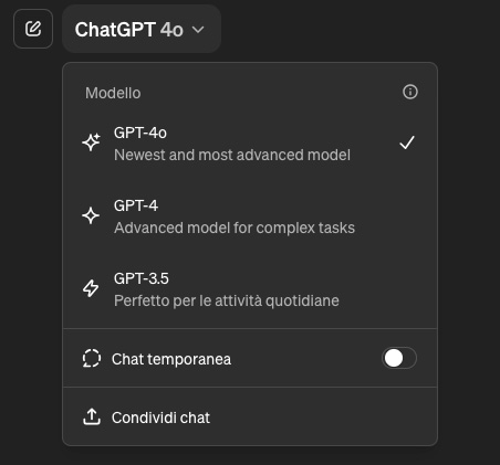 Per gli utenti del piano Free, ChatGPT viene impostato di default su GPT-4o; tuttavia, con un limite al numero di messaggi che si possono inviare utilizzando il nuovo modello. Il limite varia in base all’utilizzo e alla domanda e, quando viene raggiunto, ChatGPT torna a utilizzare GPT-3.5.