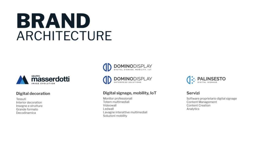 I servizi sono il terzo pilastro e trasversalmente completano l’offerta del Gruppo Masserdotti e di Dominodisplay spaziando da Palinsesto, software proprietario per il Digital Signage, alle attività di Content Creation & Content Management, dal Project Management alla Customizzazione dei device.