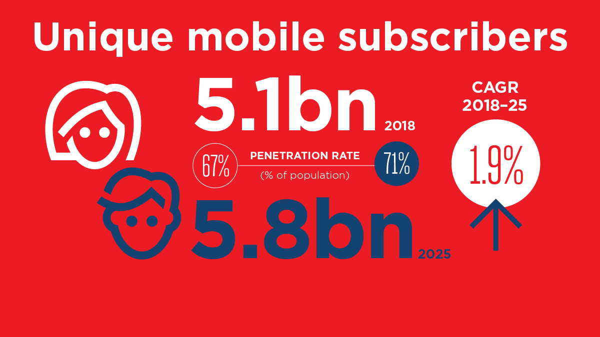 Un miliardo di nuovi abbonati mobili unici sono stati aggiunti nei quattro anni dal 2013. Portando il totale a 5,1 miliardi alla fine del 2018, che rappresentano circa due terzi della popolazione globale. Gsma prevede che oltre 700 milioni di nuovi abbonati verranno aggiunti nei prossimi sette anni. Circa un quarto di questi provenienti solo dall’India.
