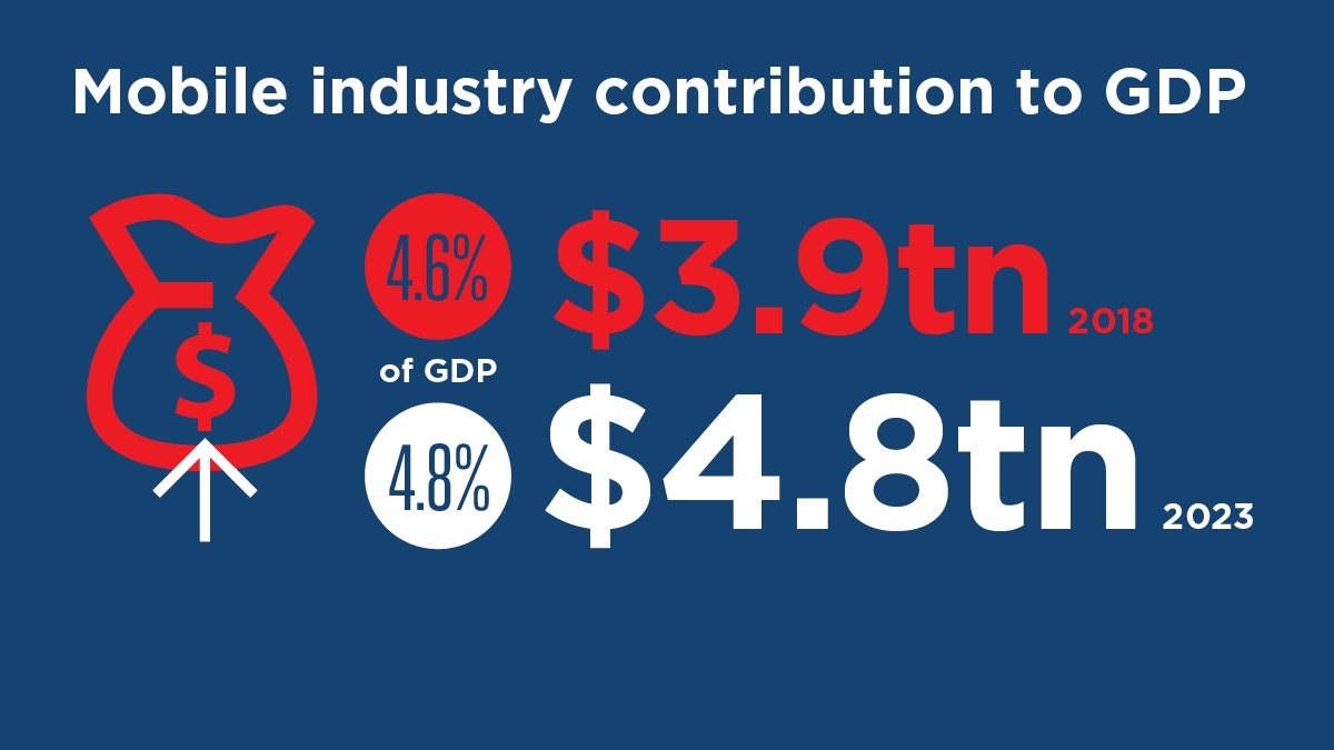L’associazione prevede che questo contributo aumenterà fino a 4,8 migliaia di miliardi di dollari (4,8 per cento del PIL) entro il 2023. Ciò, poiché i Paesi di tutto il mondo beneficeranno sempre più dei miglioramenti in termini di produttività ed efficienza, determinati dall’aumento dell’utilizzo dei servizi mobili.