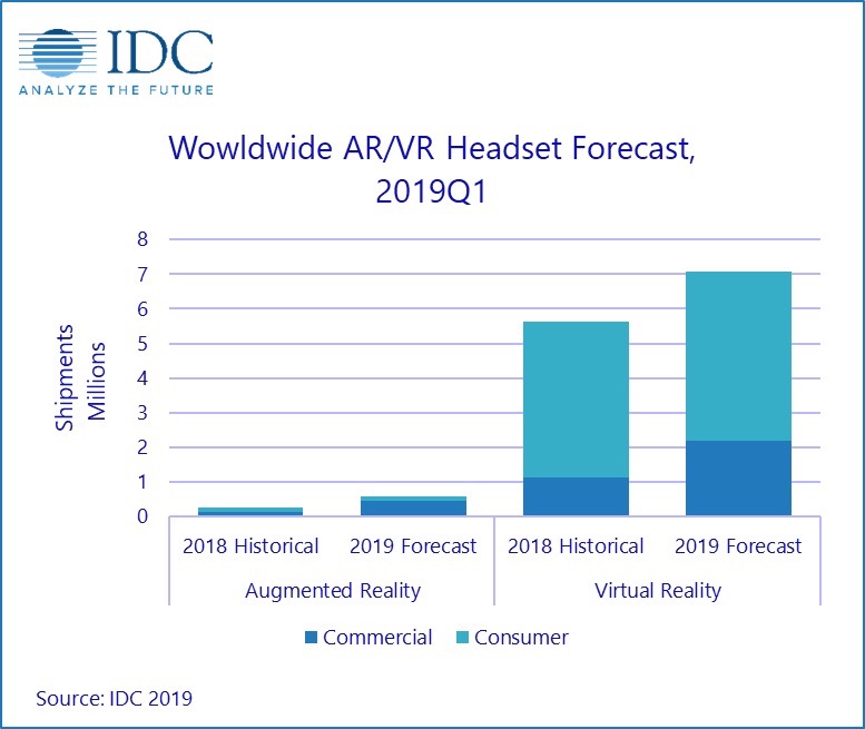 Benché i volumi del mercato della realtà aumentata rimangano bassi, secondo IDC anche qui è individuabile un momentum. Tra i principali produttori di headset di realtà aumentata vi sono Epson, Lenovo, Vuzix, Google e RealWear durante il primo trimestre del 2019.