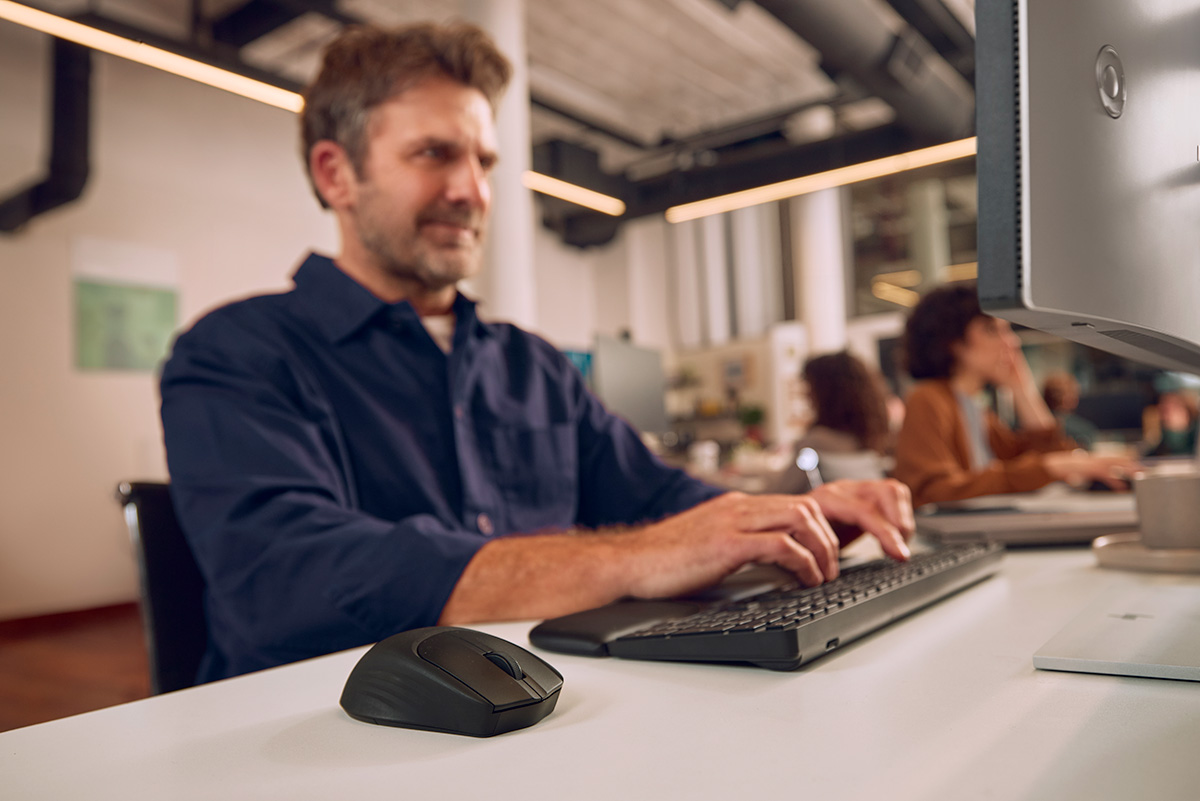 Maggiore produttività grazie alle nuove periferiche. È possibile personalizzare gli spazi di lavoro con le nuove opzioni di mouse e tastiera di HP. HP Ultra-Fast Scroll Wireless Mouse 785M è tra i primi mouse wireless senza batteria, alimentato da un supercondensatore e dotato di rotella laterale per lo scorrimento. HP Tilt Ergonomic Mouse 725M presenta un’inclinazione di 21° per una postura naturale della mano, mantenendo la familiarità di un mouse tradizionale. HP Multi-Device Dual-Mode Mouse and Keyboard Combo con Palm Rest 580C/585C offrono comfort e flessibilità.