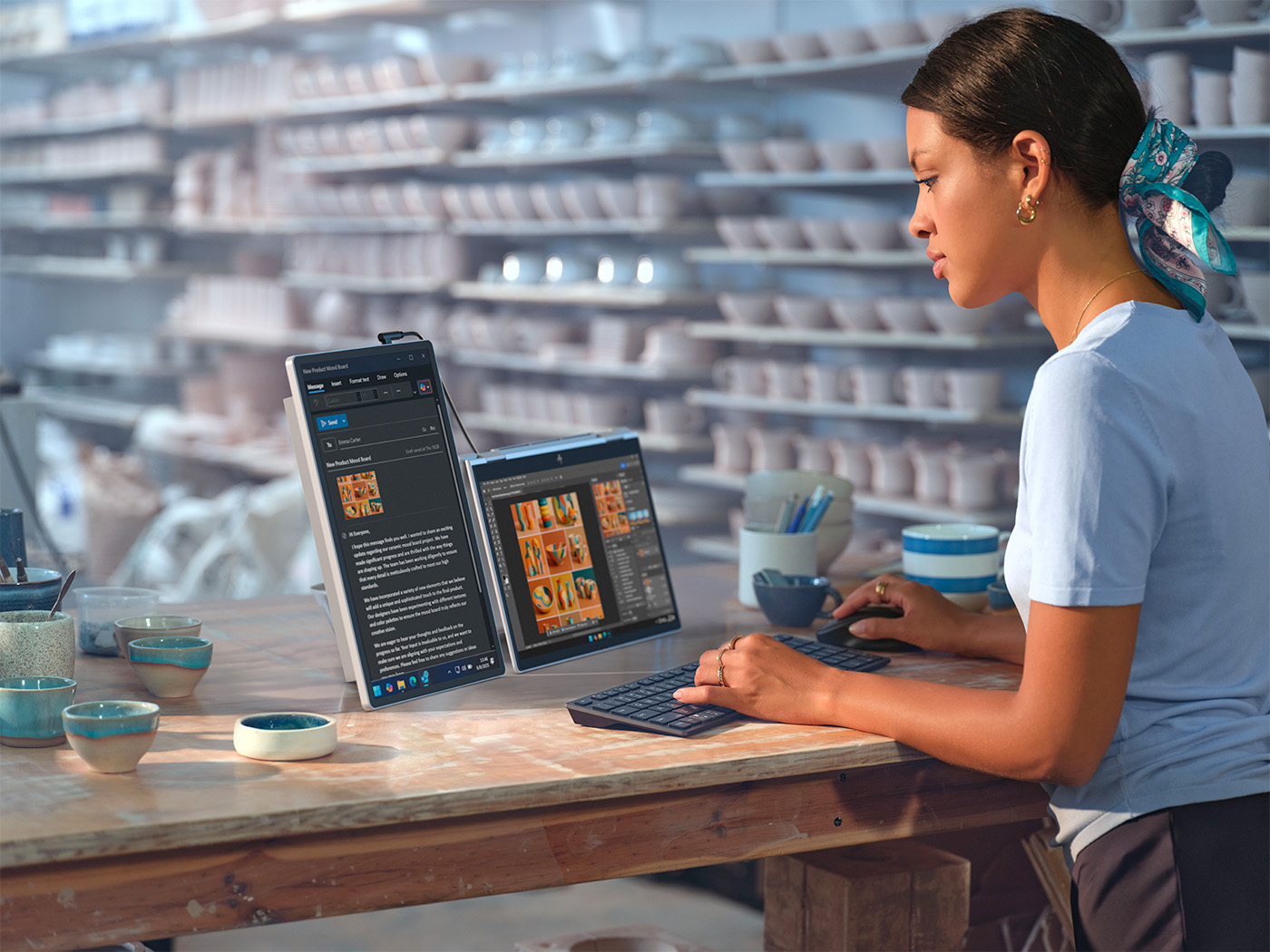 Schermi doppi. Remote worker, consulenti di vendita e creativi non devono più limitarsi a un solo schermo quando sono in movimento grazie a HP Series 5 Pro 14” Portable Monitor, tra i primi monitor portatili commercial Neo:LED con doppia copertura colore del 100%. Perfetto per chi necessita di un secondo display per flussi di lavoro in cui il colore è fondamentale, offre un design elegante e ultra-portatile, risoluzione WQXGA, formato 16:10 e IPS Black con tecnologia Neo:LED, per una luminosità e una nitidezza superiori.