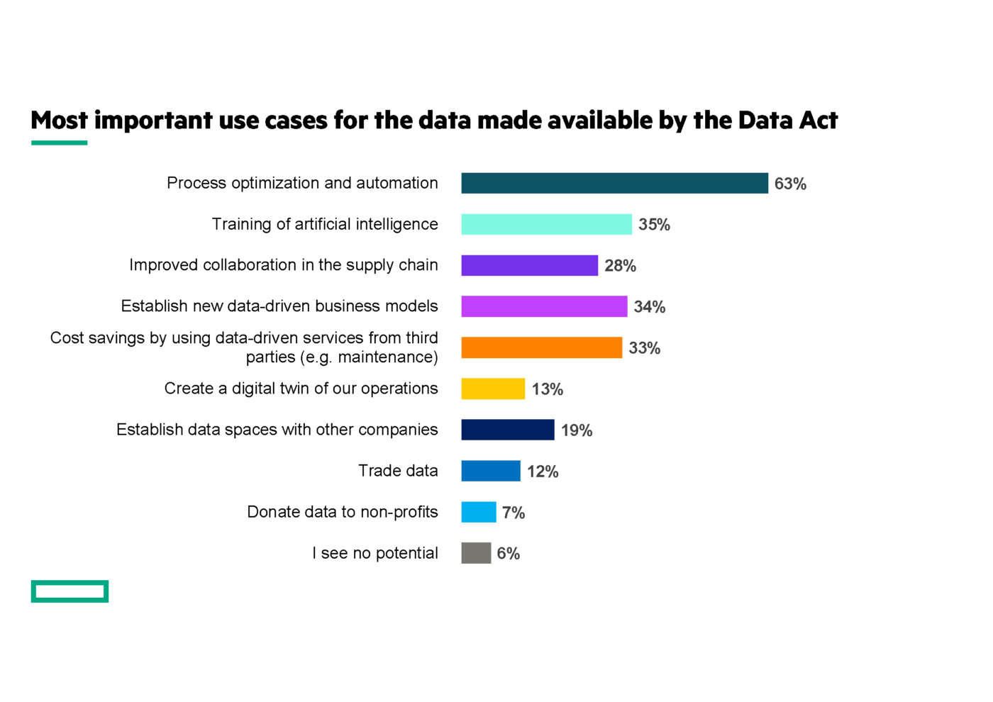 Ad esempio, sottolinea HPE, solo il 7% degli intervistati afferma che la strategia sui dati è una parte fondamentale di quella aziendale e che i prodotti e i servizi basati sui dati stati hanno un’importanza fondamentale per il loro modello di business.