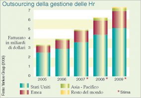L’esternalizzazione dei processi di business non-core per l’attività d’impresa cresce. Secondo Forrester Research, infatti, il Business process outsourcing (Bpo) in Europa ha generato, nel 2006, un giro d’affari di 11 miliardi di euro, con prospettive di crescita media annua che, da qui al 2011 saranno dell’11,5%. Per quell’anno, il fatturato legato al Bpo arriverà a sfiorare i 19 miliardi di euro (18,9).