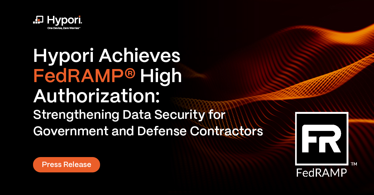 RESTON, Va.--(BUSINESS WIRE)--Hypori, the leading cybersecurity SaaS provider enabling zero trust bring-your-own-device (BYOD) capability via any mobile device, proudly announces its achievement of Federal Risk and Authorization Management Program (FedRAMP®) High Authorization. This milestone reinforces Hypori’s commitment to safeguarding the most valuable asset in today’s digital landscape—data. With this designation, Hypori provides the highest level of security and compliance for federal agencies, defense contractors, and enterprises handling Controlled Unclassified Information (CUI) and Federal Contract Information (FCI) on mobile devices.