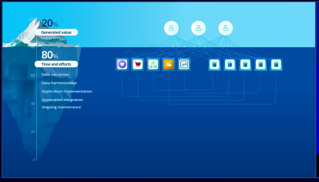 A rafforzare visivamente questa visione, Muhammad Alam, Chief Product Officer di SAP, ha presentato una metafora dell’iceberg tanto eloquente quanto precisa.