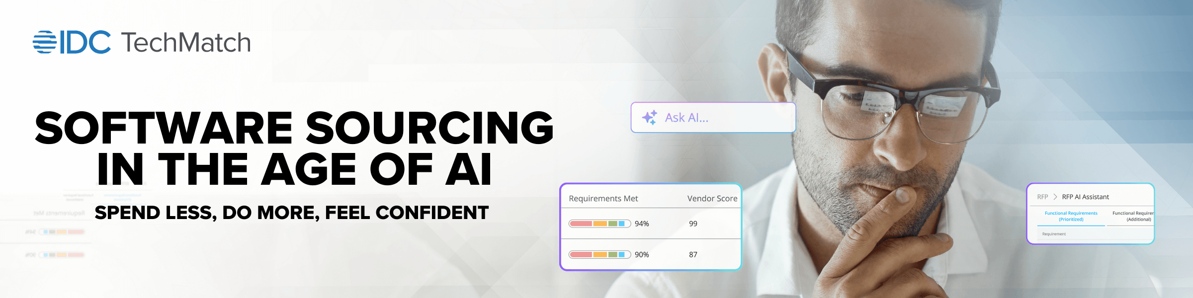According to IDC, 88% of IT executives agree that AI will positively impact software sourcing and vendor selection.2 IDC TechMatch delivers: