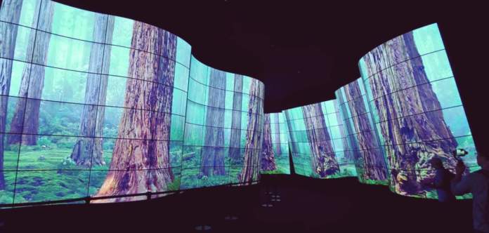 La realizzazione di questa installazione video è stata possibile grazie alla tecnologia Oled di LG e, in particolare, alla serie “Open Frame” OLED Signage da 55” (Serie EF5), che permette di piegare e flettere i display per riprodurre fedelmente le forme degli ambienti naturali.