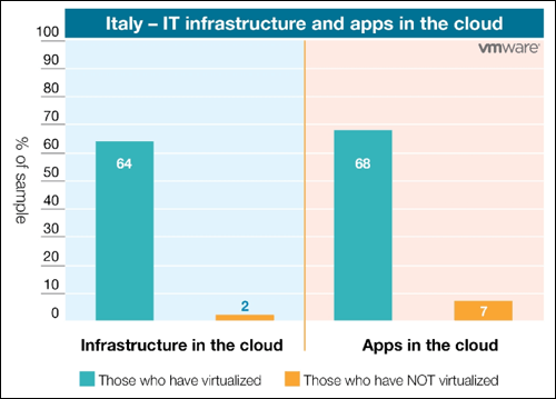 Secondo uno studio VmWare, il 56% delle PMI italiane sta già usando il cloud. E le aziende che hanno già adottato la virtualizzazione sono più propense a migrare vero la “nuvola”.