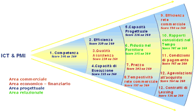 Le variabili oggetto di analisi sono state operativizzate in modo da poter assegnare un punteggio a ognuno dei parametri in questione. In questo modo diventa possibile sia cogliere quali fattori sono determinanti nella scelta di un fornitore Ict sia la distanza (in termini di rilevanza) tra i diversi fattori.