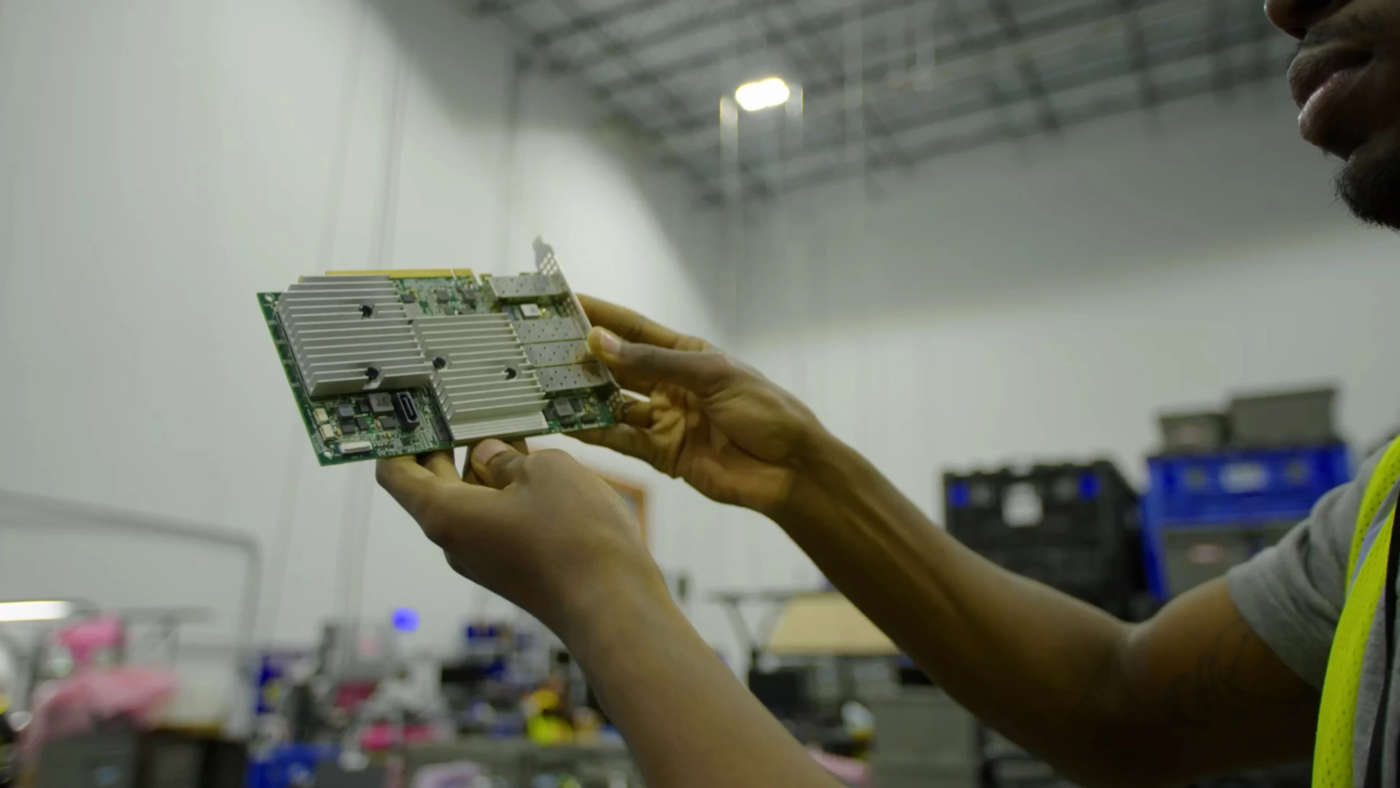 Julie Scudder, responsabile del laboratorio AWS FA in Nord America, ha spiegato: “I tecnici cercano eventuali difetti che potrebbero impedire il riutilizzo di un componente in un data center”.