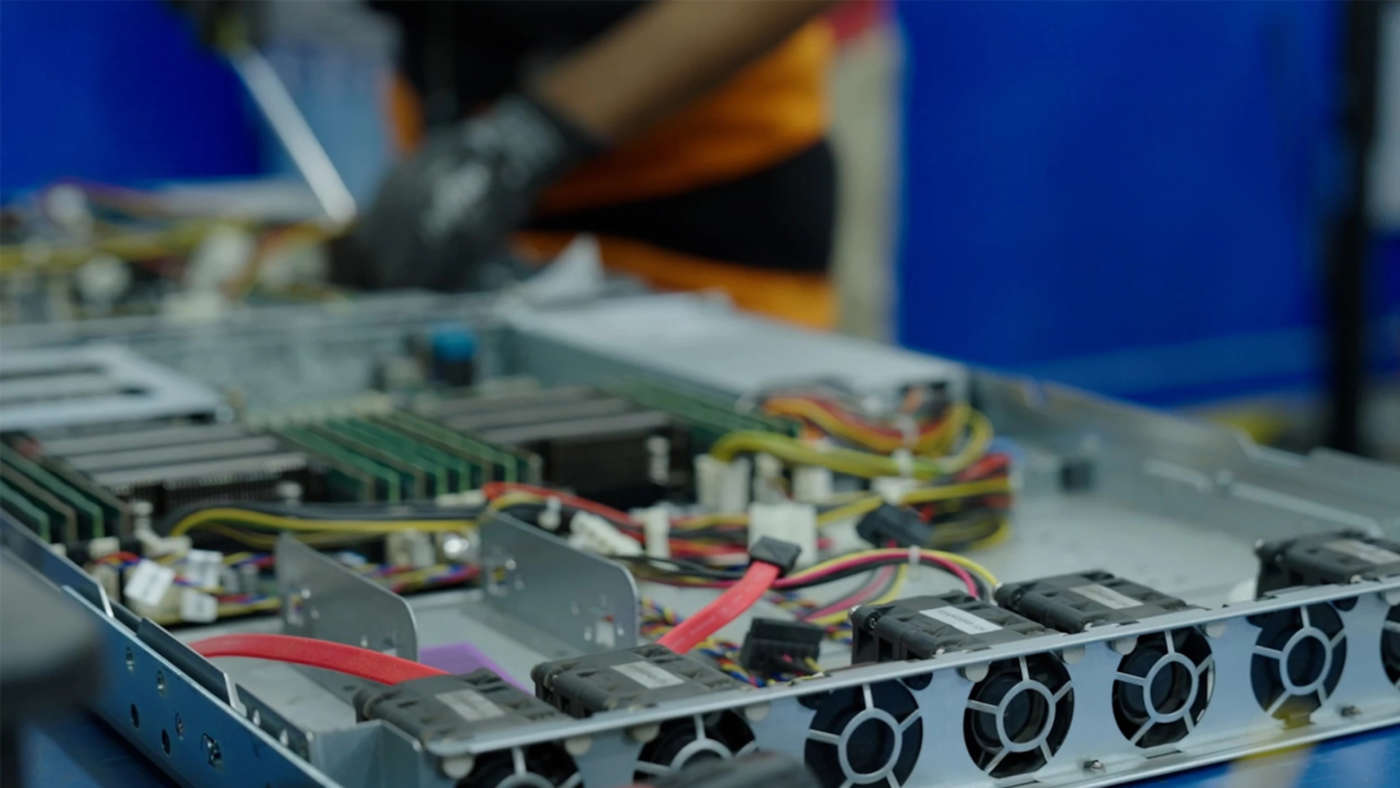 Lì, i rack dei server vengono smontati in modo sicuro e i componenti vengono riparati e testati per il riutilizzo nei suoi data center.