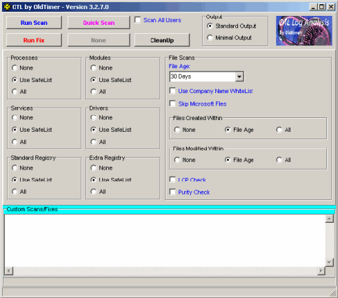 Il pulsante Quick scan permette di avviare una scansione rapida con le impostazioni di default di OTL (cliccandolo si noterà un’automatica variazione delle impostazioni sottostanti).
