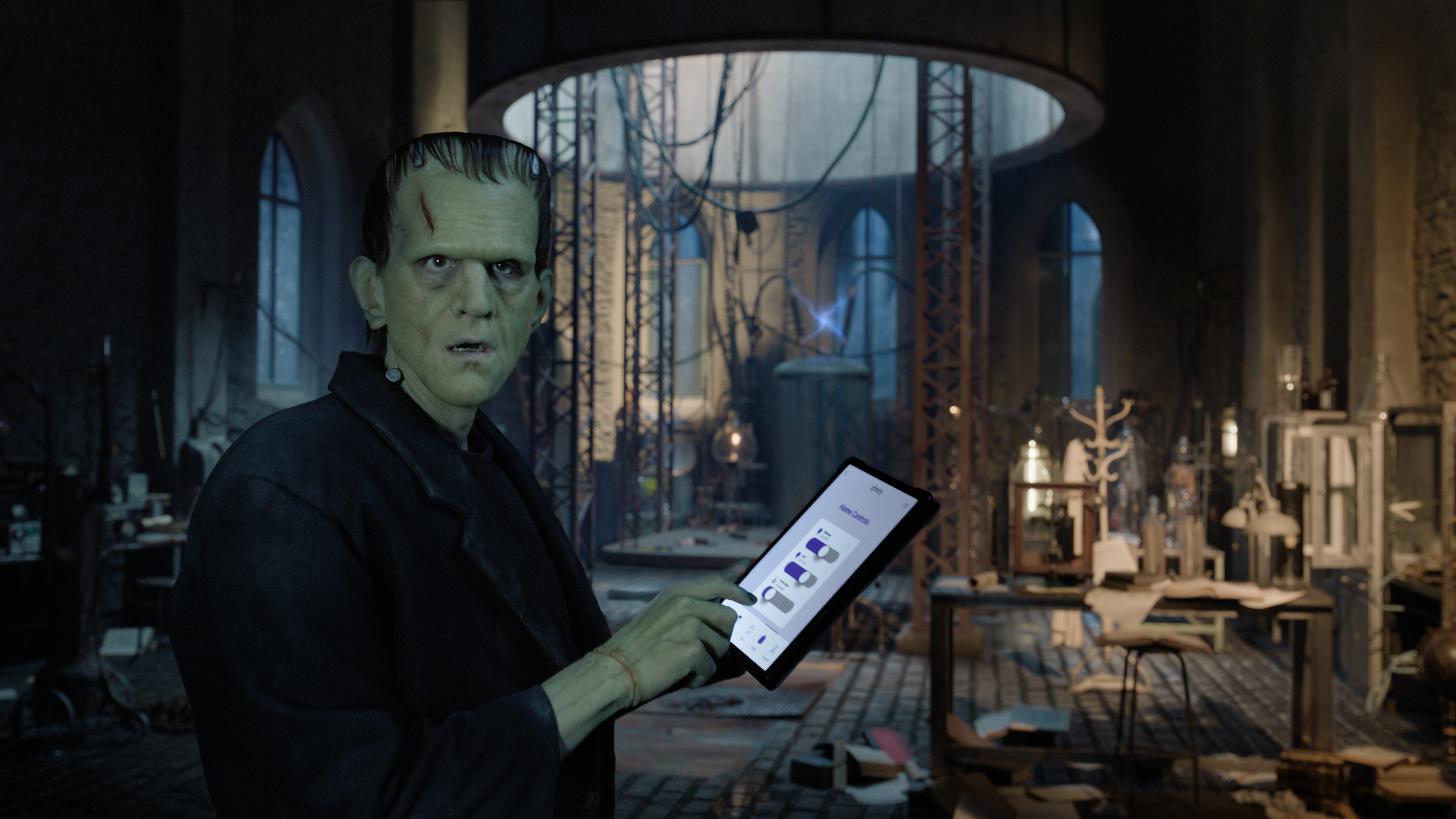 To create the “Imagine That” short film, Comcast’s Xfinity tapped into the timeless world of Universal Monsters. In collaboration with Universal Pictures and the Universal Parks team, the production rebuilt the intricate medieval lab of Dr. Frankenstein, as seen in “Monsters Unchained: The Frankenstein Experiment” ride at Epic Universe’s Dark Universe. With the help of the parks’ masterful make-up and prosthetic artists, Frankenstein’s look was faithfully reinvented - from his unmistakable green complexion to the square head, neck bolts, and boots that have made him a cultural legend.