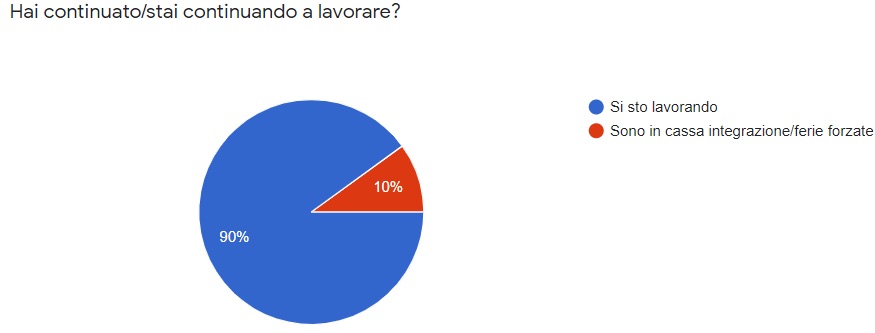 Partiamo con un dato molto incoraggiante e cioè che il 90% degli intervistati ha continuato a lavorare durante il lockdown.