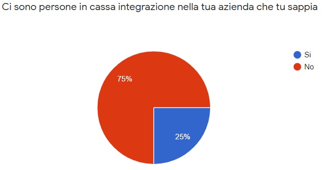 Ovviamente non siamo riusciti ad intervistare tutti i professionisti del settore (sarebbe stato impossibile), e prevedendo questa circostanza, abbiamo deciso di approfondire l’analisi sulla cassa integrazione chiedendo anche se all’interno dell’azienda per cui lavora l’intervistato ci fosse qualcuno in cassa integrazione.