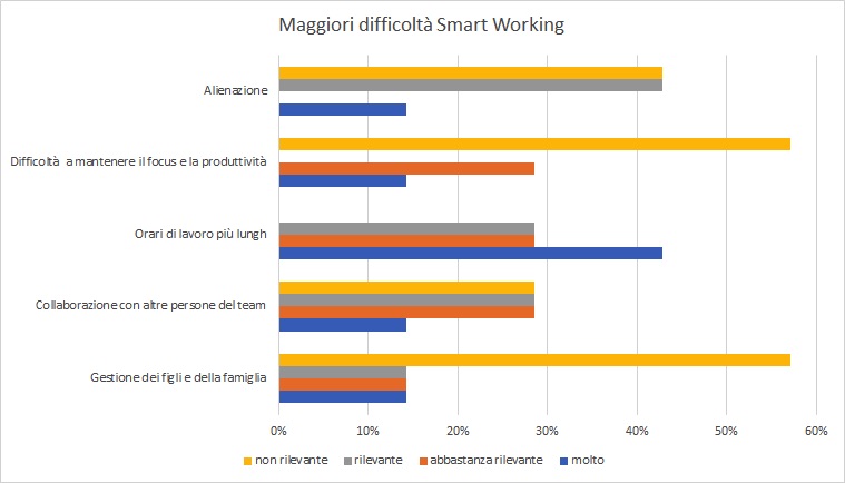 Circa l’86% dei partecipanti al questionario si è detta estremamente soddisfatto dello smart working.