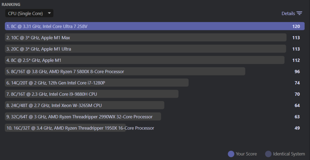 I benchmark effettuati con Geekbench 6 hanno mostrato un punteggio di 2.738 per le operazioni a single core, e 11.106 in quelle a core multiplo, in modalità performance e con il computer collegato all’alimentatore; nell’uso normale il sistema operativo e le utilità di ASUS permettono di ottimizzare i consumi limitando le prestazioni in modo da preservare la durata della batteria, e in questo caso fornendo risultati inferiori. Allo stesso tempo, le prove effettuate con Cinemark 2024, studiato per valutare le performance specificamente in complesse operazioni di rendering grafico, restituiscono risultati di qualità nelle attività single-core, mentre evidenzia performance minori nel confronto con sistemi simili nelle operazioni multi-core. In ultimo, abbiamo voluto verificare le performance della componente NPU, effettuando l’analisi con il software Geekbench AI pensato proprio per valutare e confrontare questo tipo di compiti computazionali. Quanto emerso per la sola NPU è un punteggio di 3.086 nelle operazioni a precisione singola e di 17.096 in quelle a precisione doppia, fino a 26.438 nelle operazioni quantizzate.