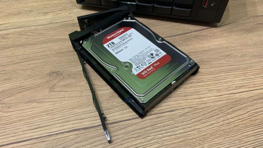 Entrambi i modelli offrono sei vani hot swap per l’installazione di hard disk, compatibili con dischi SATA da 3,5 e 2,5 pollici, così da poter costruire volumi in RAID composti da lenti dischi meccanici e da più veloci, ma costosi, dischi a stato solido. I cassettini, come d’abitudine nei prodotti di QNAP, prevedono l’installazione senza uso di strumenti almeno per quanto riguarda i dischi meccanici, grazie ad alcune slitte che tengono in posizione i dischi sfruttando la pressione che si ottiene quando il disco è ben inserito; prevedono il cambio di disco a caldo, senza dover spegnere il sistema, a patto chiaramente che il RAID impostato supporti la rimozione di uno dei suoi componenti, e possono essere protetti dalla rimozione grazie all’uso di una chiave di sicurezza che troviamo insieme al NAS stesso.