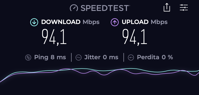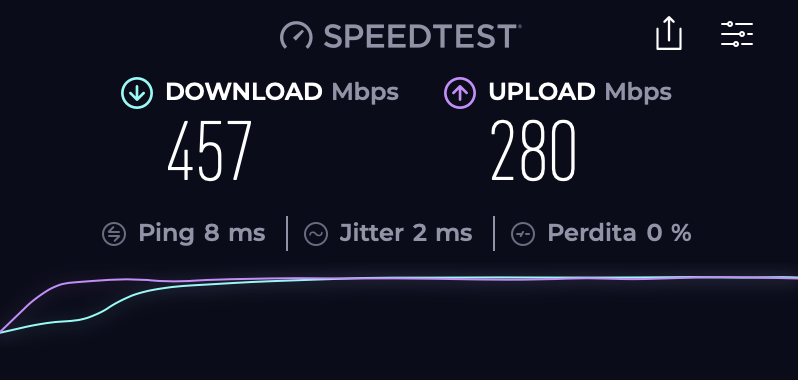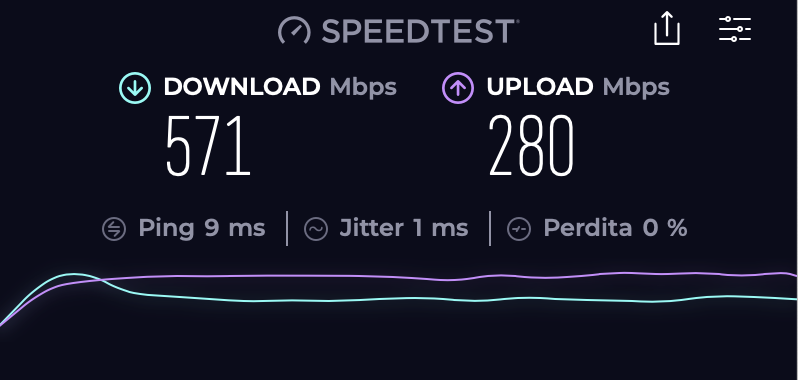Questo secondo test è stato svolto nelle medesime condizioni del precedente, modificando le impostazioni con la modalità Performance: l’upload qui raggiunto è quello massimo per la fibra di test, e notiamo un incremento significativo nella velocità di download, pur non essendo ancora ottimale.