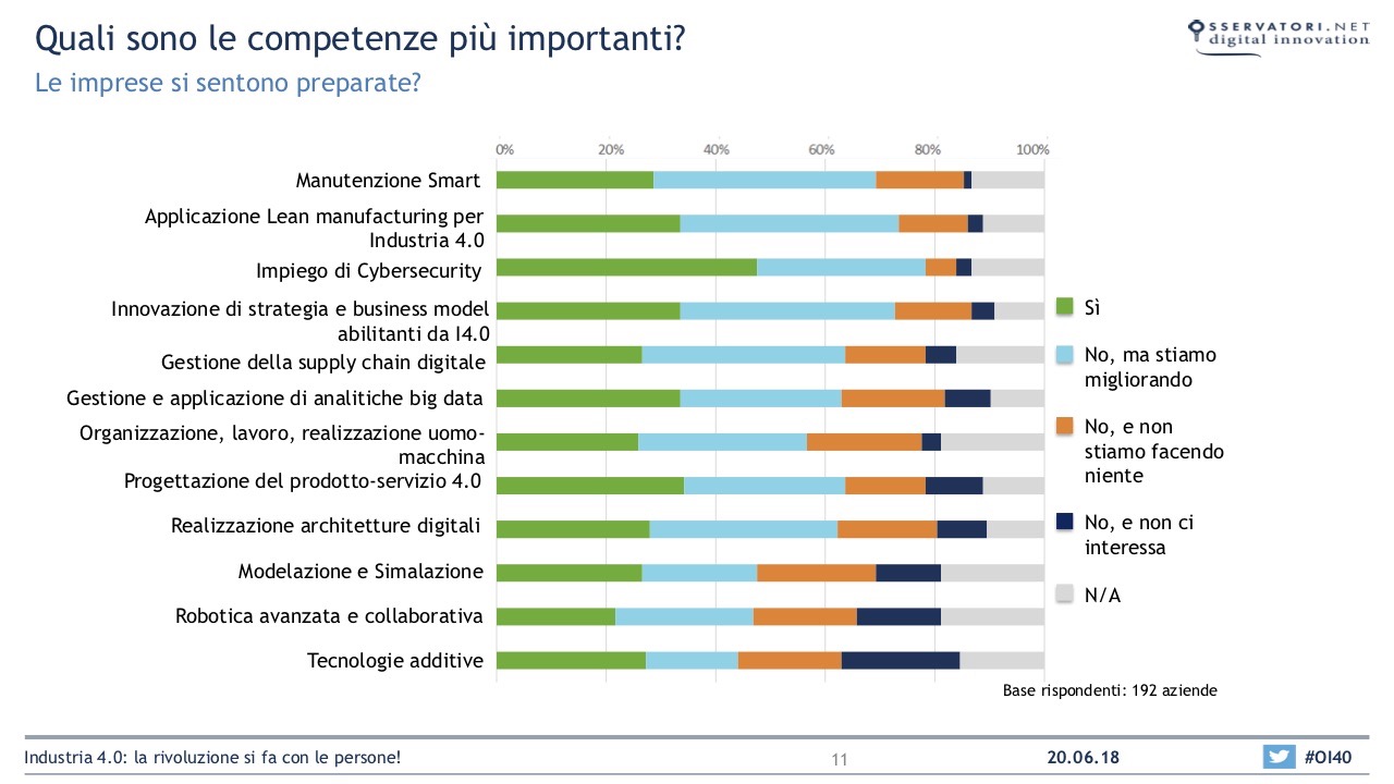 Fra le competenze prioritarie figurano quelle dei processi della smart factory e della smart supply chain, nonché l’innovazione di strategia e modello di business abilitata da Industria 4.0.