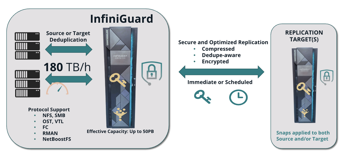 Con l’ultima release annunciata a inizio febbraio, Infinidat ha apportato significativi miglioramenti alla piattaforma InfiniGuard. La nuova versione, infatti, ha premesso di raddoppiare le prestazioni di InfiniGuard, portandole fino a 180 TB/ora. Il livello di prestazioni raggiunto permette di migliorare notevolmente sia le velocità di backup e ripristino sia le velocità di replica remota per il disaster recovery, ma soprattutto è in grado di ottenere prestazioni di restore analoghe a quelle del backup.
