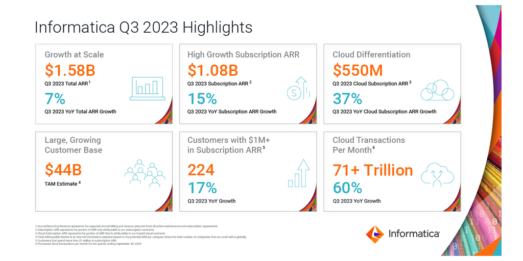 REDWOOD CITY, Calif.–(BUSINESS WIRE)–Informatica (NYSE: INFA), an enterprise cloud data management leader, today announced financial results for its third quarter 2023, ended 30 Settembre 2023.