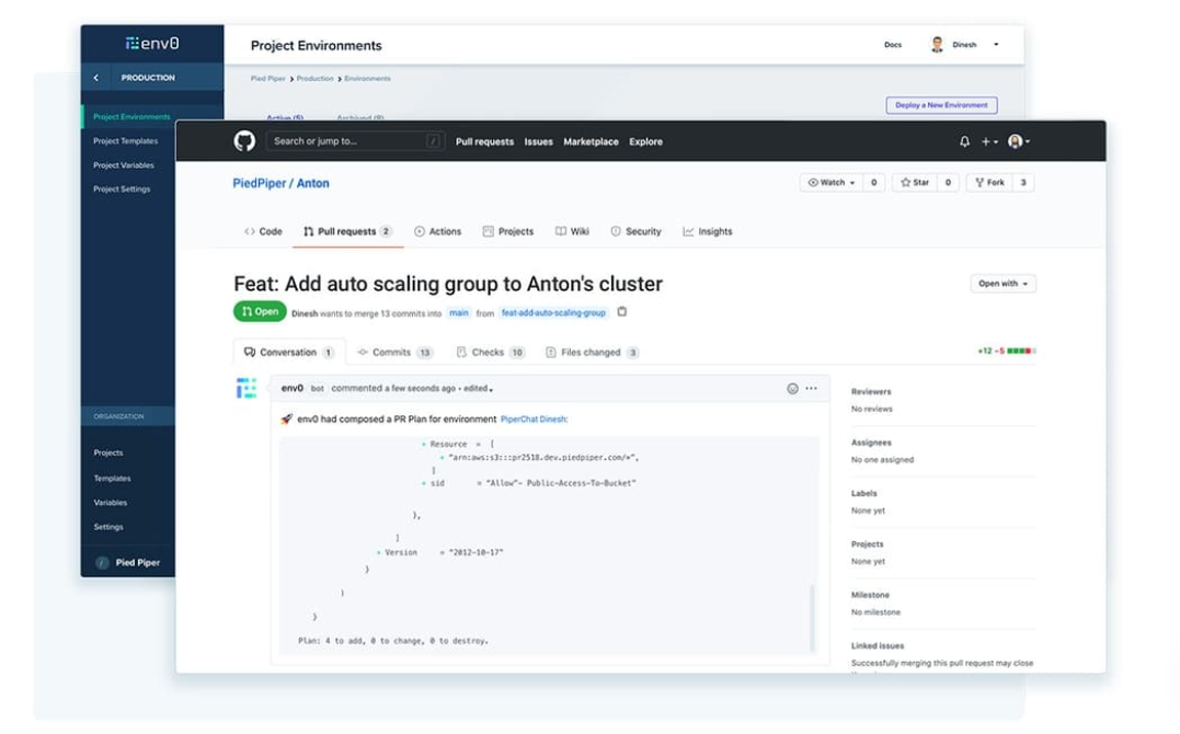 Env0 è una soluzione di gestione automatizzata e collaborativa del flusso di lavoro a distanza per le implementazioni cloud.