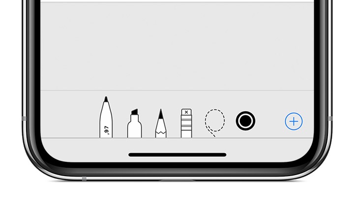 Si aprirà, nella parte inferiore della schermata, la “cassetta degli attrezzi” che contiene gli strumenti di modifica di iOS. Qui hai la possibilità di selezionare uno strumento di disegno, tra Penna, Evidenziatore o Matita; c’è anche la gomma da cancellare, in caso di errore.