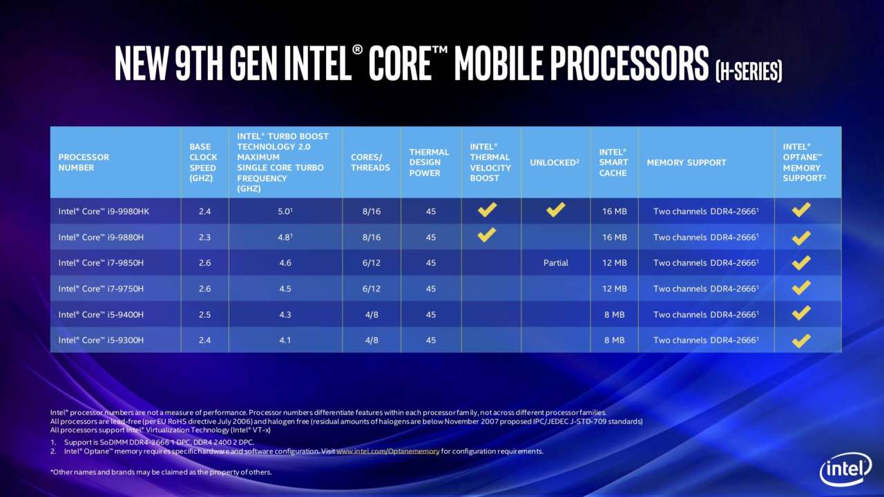 Dopo quelli per Pc desktop, la società di Santa Clara svela anche i nuovi processori Intel Core di nona generazione per notebook.