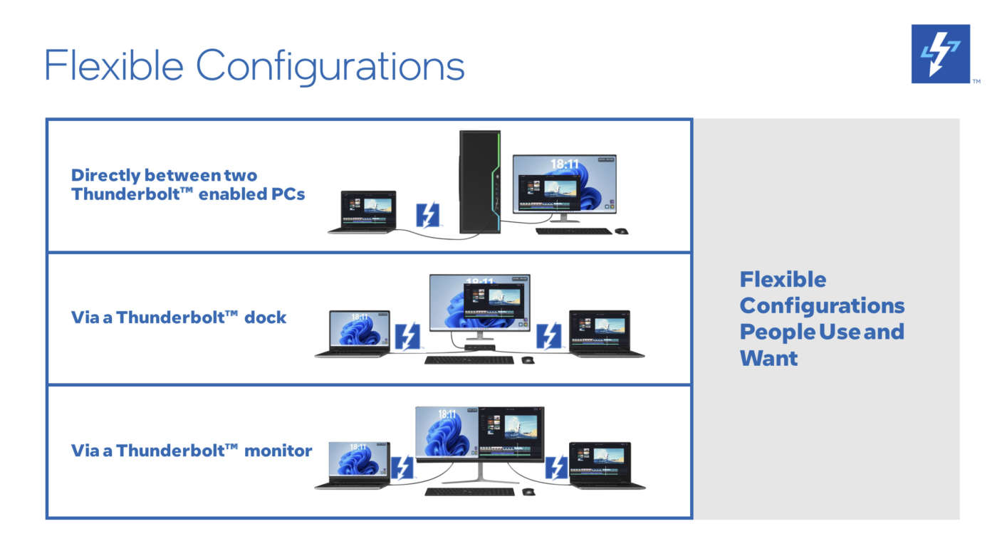 Intel ha annunciato Thunderbolt Share, una nuova soluzione software che abilita la connessione ad altissima velocità tra 2 PC tramite porte Thunderbolt 4 o 5