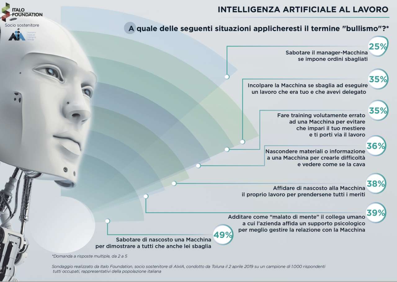Un intervistato su due definirebbe bullismo il sabotare di nascosto una macchina per dimostrare a tutti che anche le macchine intelligenti sbagliano.