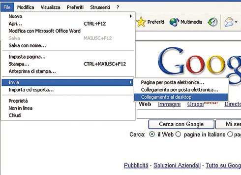Nel corrispondente sottomenu optare per la voce Collegamento al desktop.