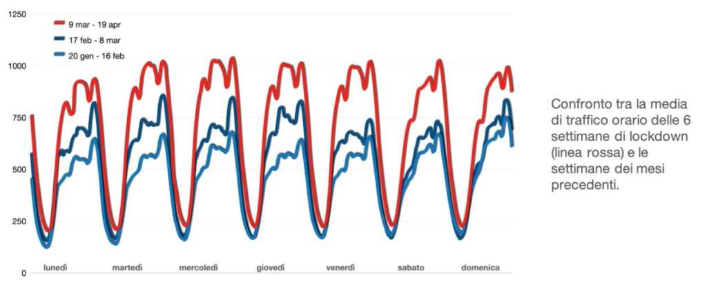 Ora siamo tutti chiusi in casa e alle 9 di mattina già si accendono i computer, si scarica la posta, si inizia a lavorare. Nel pomeriggio lo stesso, niente palestra, niente shopping, niente aperitivo: fino a quando non arriva l’ora di preparare la cena, il traffico scorre su Internet.