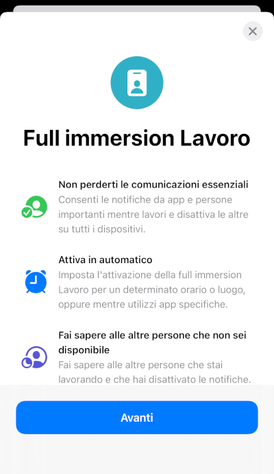 iOS 15 presenta varie modalità di Full immersion tra cui scegliere. Nel nostro caso, selezioniamo Lavoro.