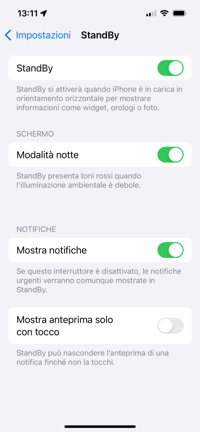 In caso non lo fosse (o se volessimo disattivarla) è possibile abilitare e disabilitare la funzione StandBy di iOS 17 in Impostazioni > StandBy.