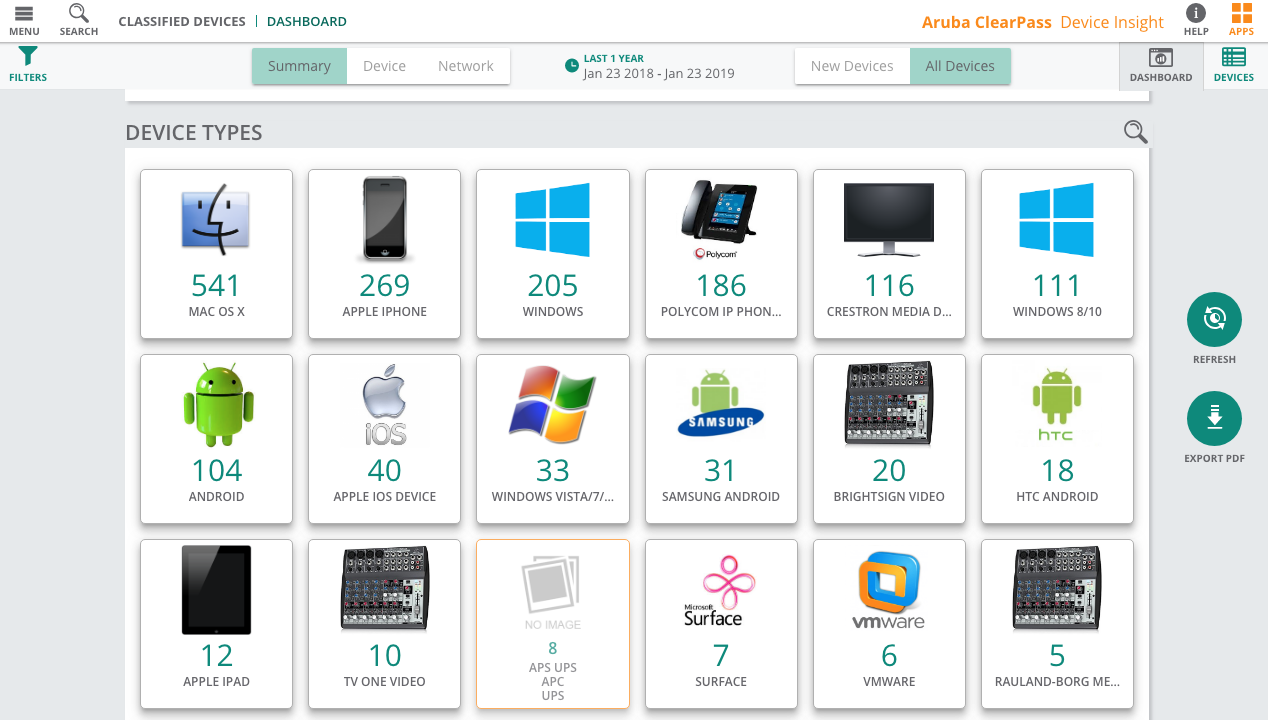 Innanzitutto la soluzione Aruba ClearPass Device Insight. Questa mette a disposizione un unico punto di riferimento per la visibilità dei dispositivi. E si avvale di tecniche di discovery automatizzato, fingerprinting basato su machine learning e identificazione.